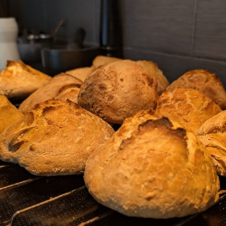 - På morgonen stjälper man upp degen på en mjölad yta, delar den i lagom stora bitar och rulla ihop delarna i en frallliknande form.